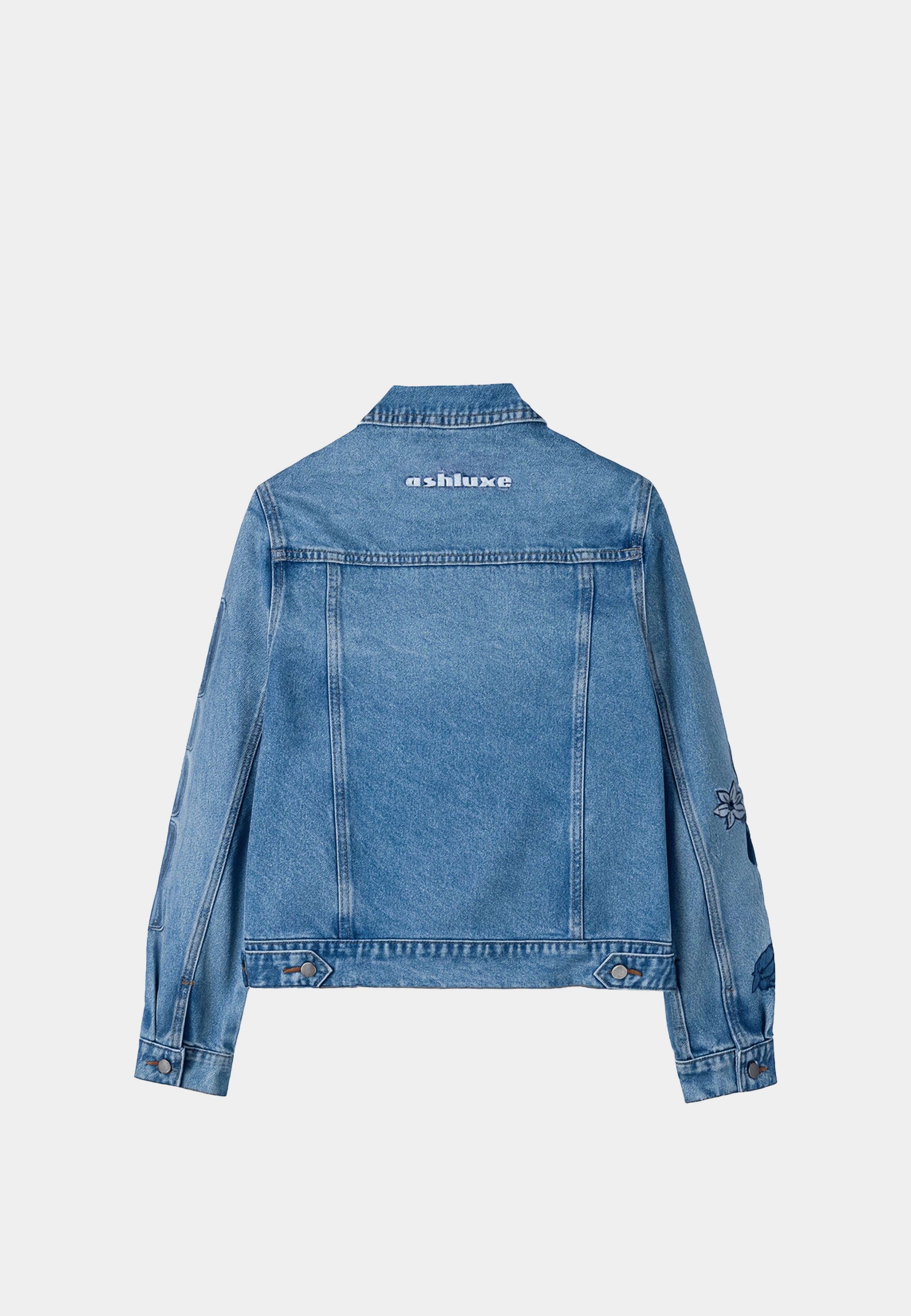 Colorway: Washed mid-blue with tonal embroidery and applique