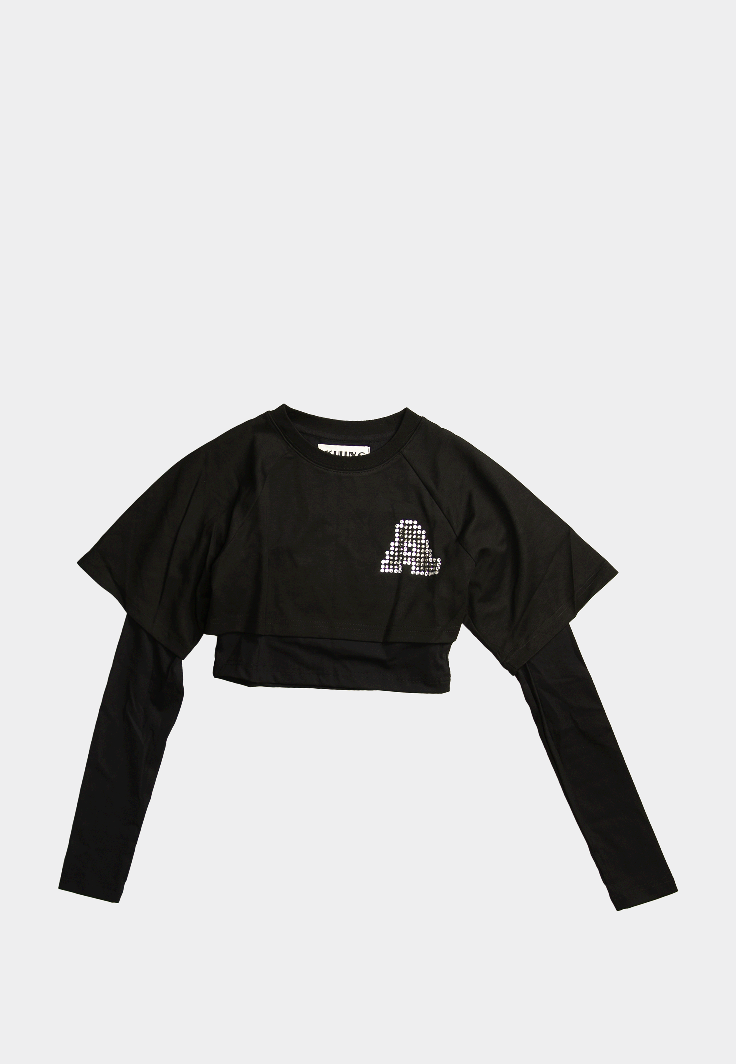 Ashluxe Women A Bling Star Layered Crop Tee Black