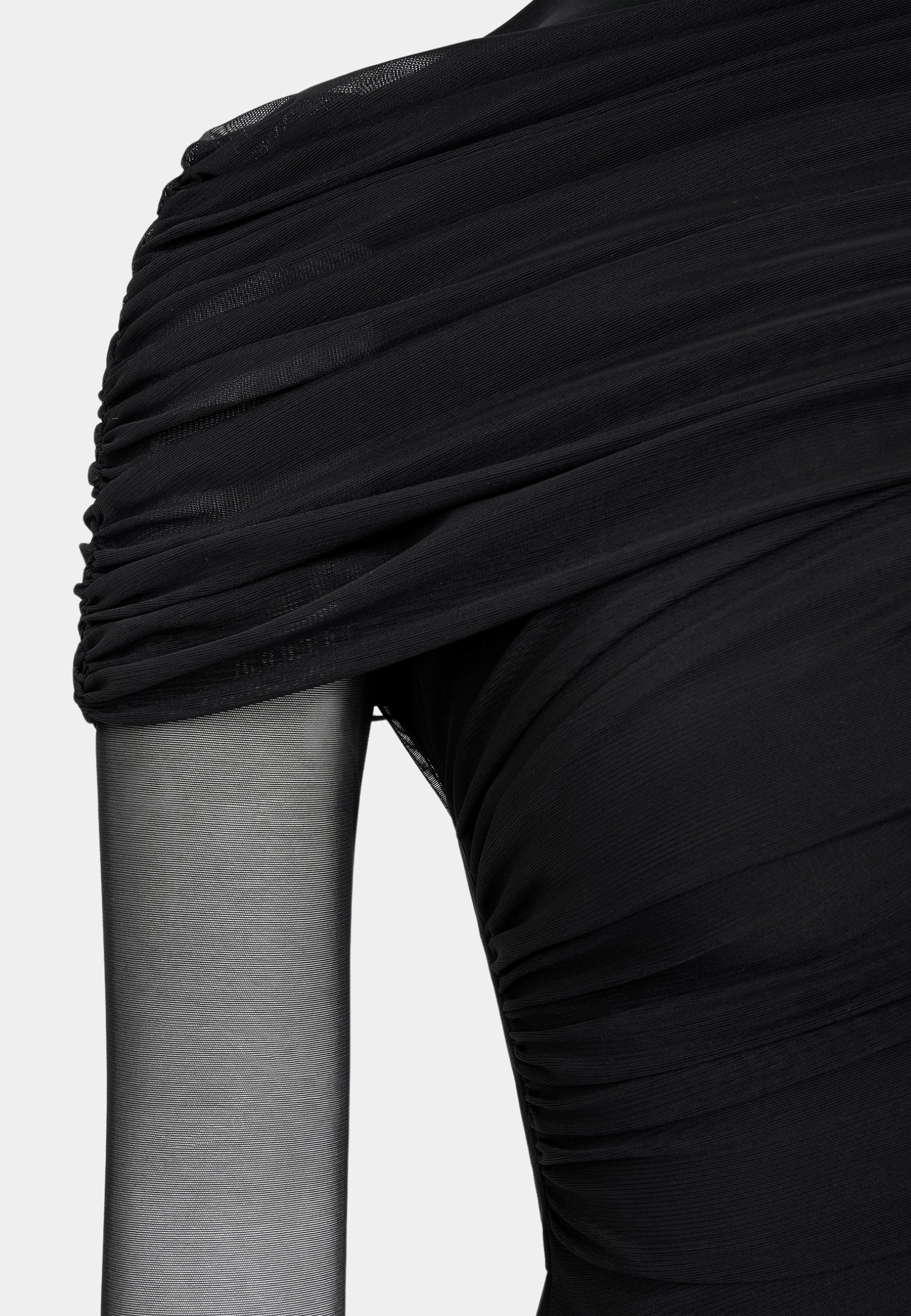 JW Pei Ella Sheer Ruched Turtleneck Top Black