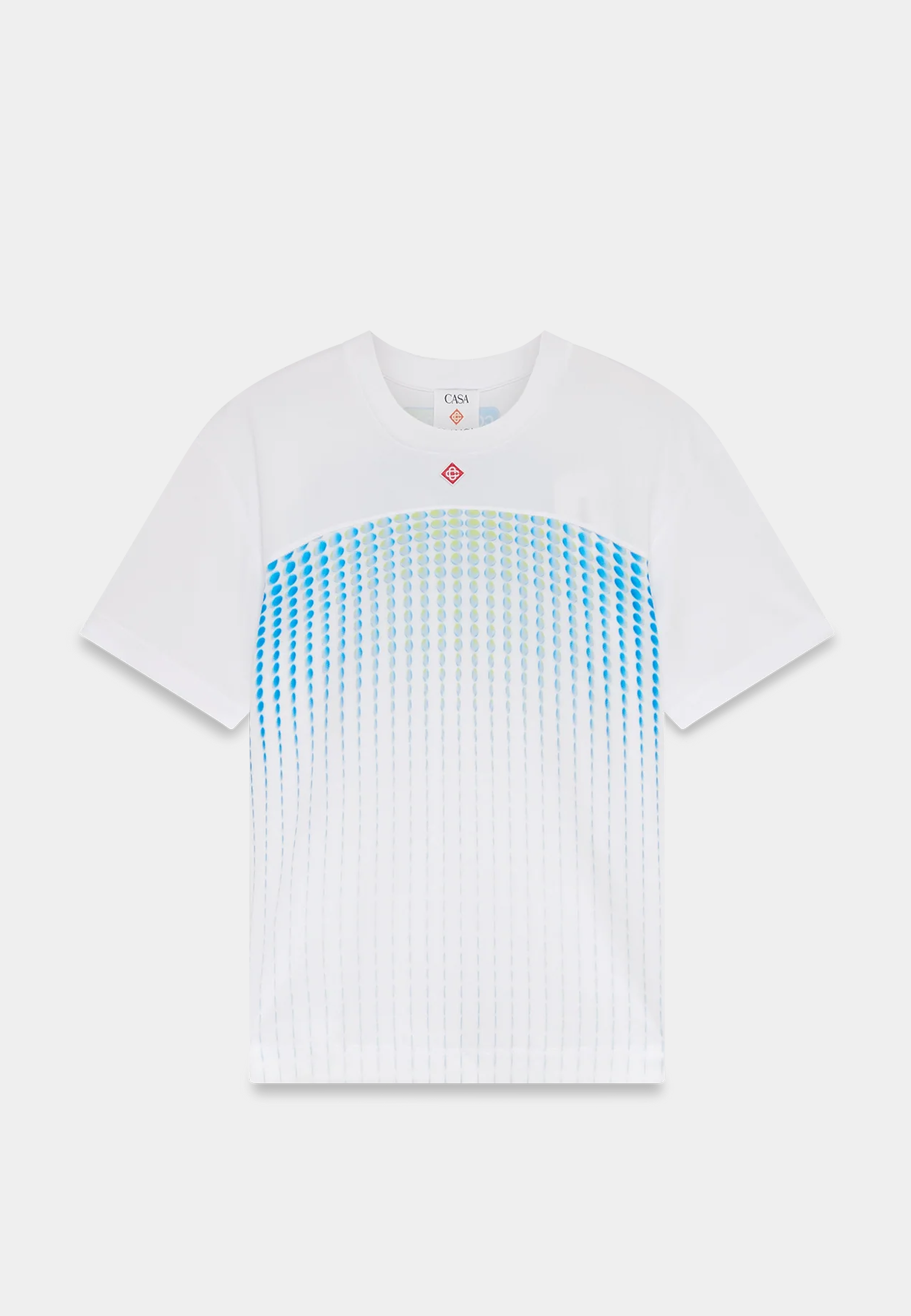 The T-shirt that takes sportswear into a different register entirely. Casablanca, founded in Paris in 2018, constructs the Tennis Tech T-Shirt in heavy birdseye mesh with a shoulder panel and crew neck, a silhouette that sits between activewear and resort dressing without fully committing to either. Available now at Ashluxury, a designer clothing boutique carrying the current season Casablanca clothing edit. Wear with silk shorts for a deliberate contrast in texture, or with tailored trousers to push the sportswear reference further.