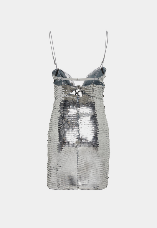 Nensi Dojaka Draped Bra Mini Dress With Double Metal Ring - Metallic Silver
