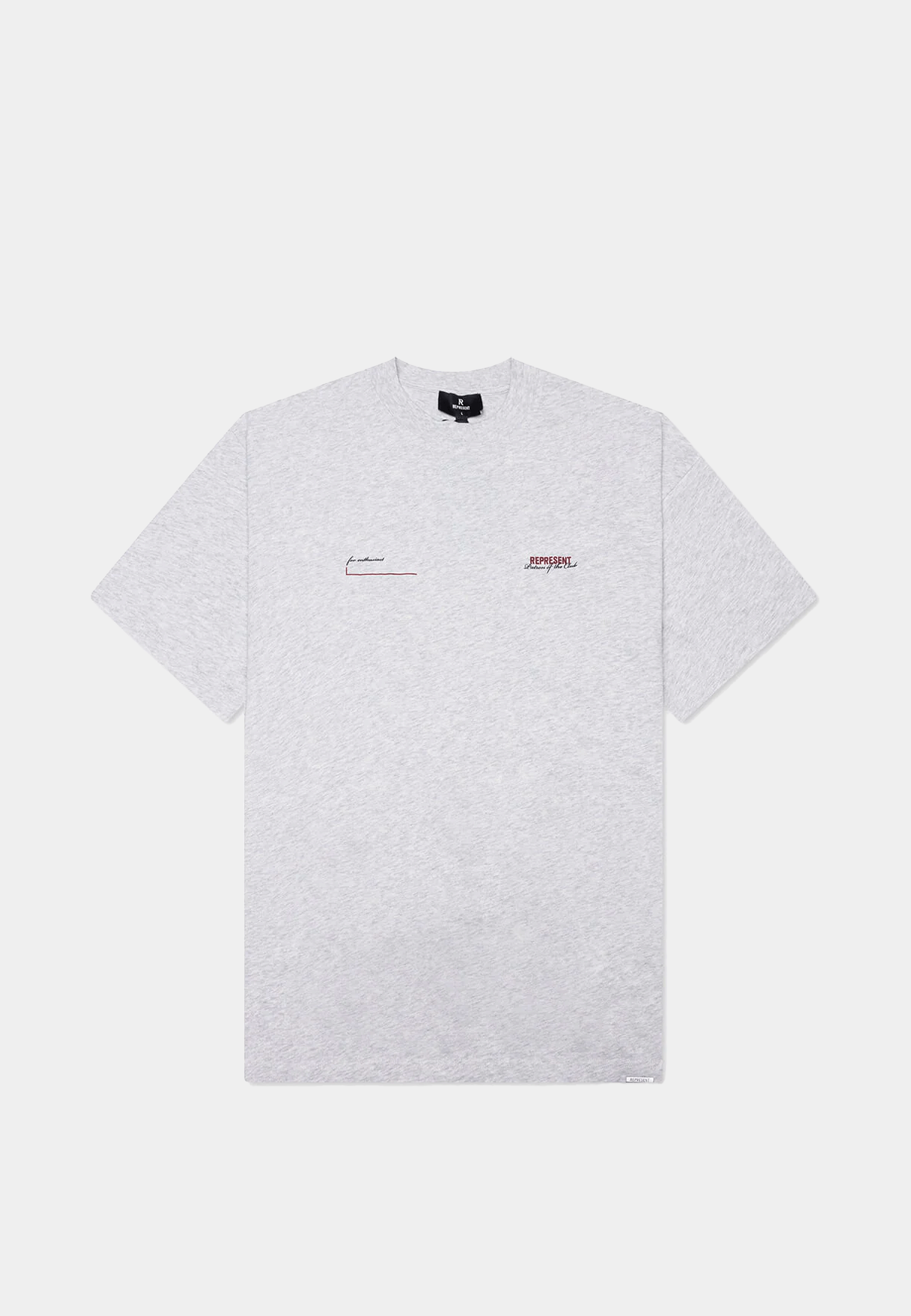 The T-shirt that makes a washed finish feel like a design decision rather than an afterthought. Represent, founded in Manchester in 2012, applies a fade-out wash and spray effect to the Patron of the Club T-Shirt Cream, crafted from 100% cotton medium weight jersey with a ribbed crewneck, Patron of the Club branding to the chest and back, and the signature Represent metal bar at the hem. The nature of the dyeing process means slight variation between pieces, making each one individual. Available now at Ashluxury, a high-end fashion store carrying the full Represent range. Wear with straight-leg black trousers or Represent cargo trousers for a considered set. Size down for a regular fit.